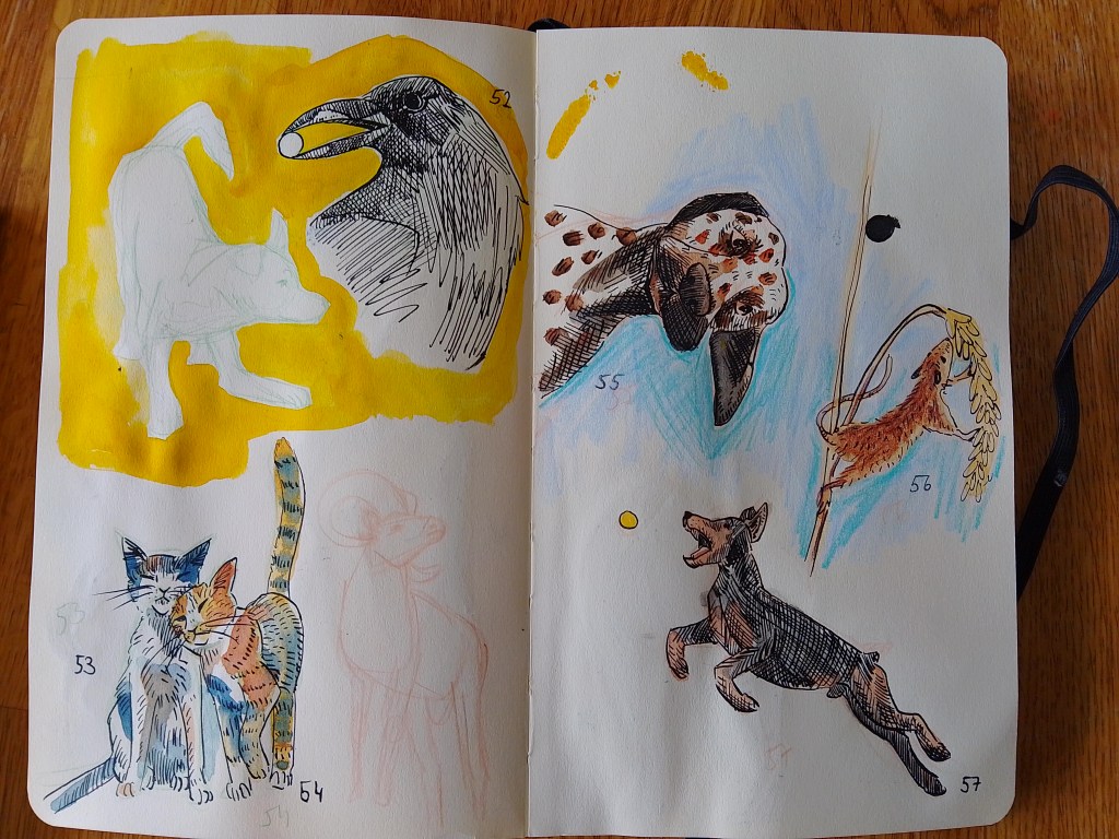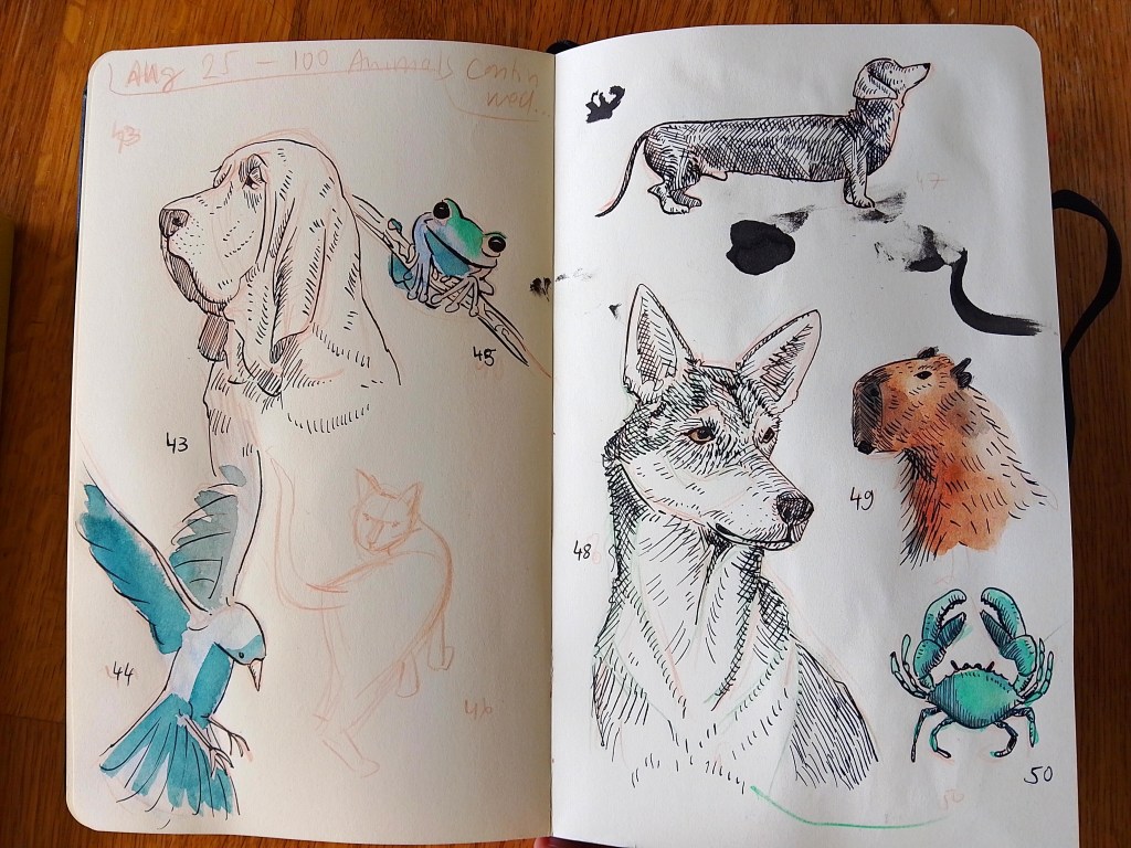 So what did I learn? Don’t worry so much about the outcome and let loose and have fun with it. I also got a lot faster in sketching maybe 10 min, inking 10-20 min. All in all, great practice as always. Now I am ready to tackle more of my other projects. How about you? What are you working on?