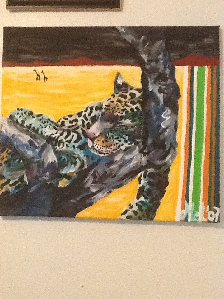 Painted it a long time ago as a present from a friend to her fiance. Meanwhile the sleepy leopard has made it all the way to HAWAII and is keeping them happy. Seems like he got a good home there as he is still sleeping ^^