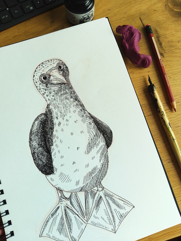 On my Pinterest search for inspiration and odd animals I came across this fella. A Blue-footed booby! Blue feet will follow!