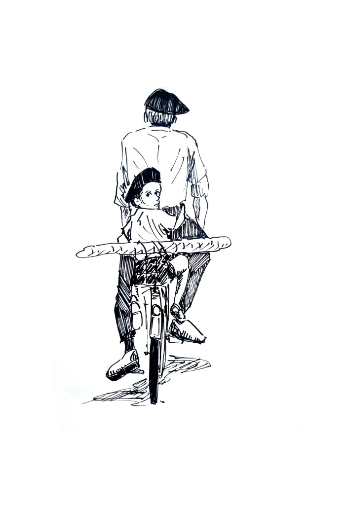 Tried something else for today´s warm up sketch. Inspired by the photo of Elliot Erwitt, Provence, 1955.