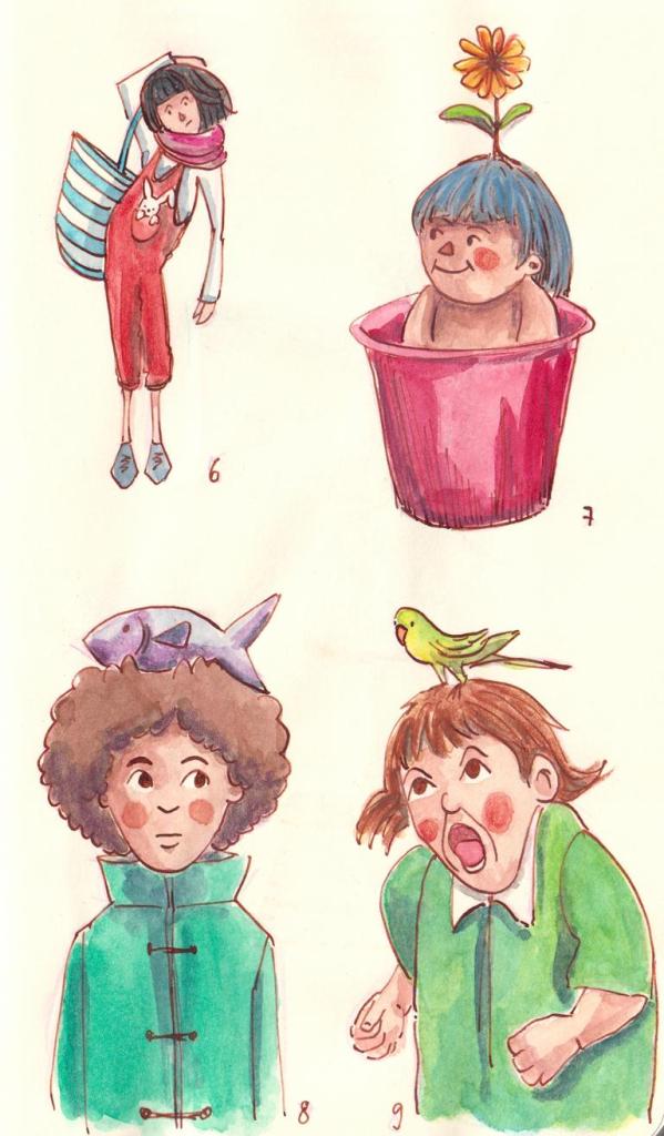 Love how these 4 turned out. I am using the opportunity to have fun with different styles and mediums. Used a mix of sienna ink, watercolour and coloured pencils for these.