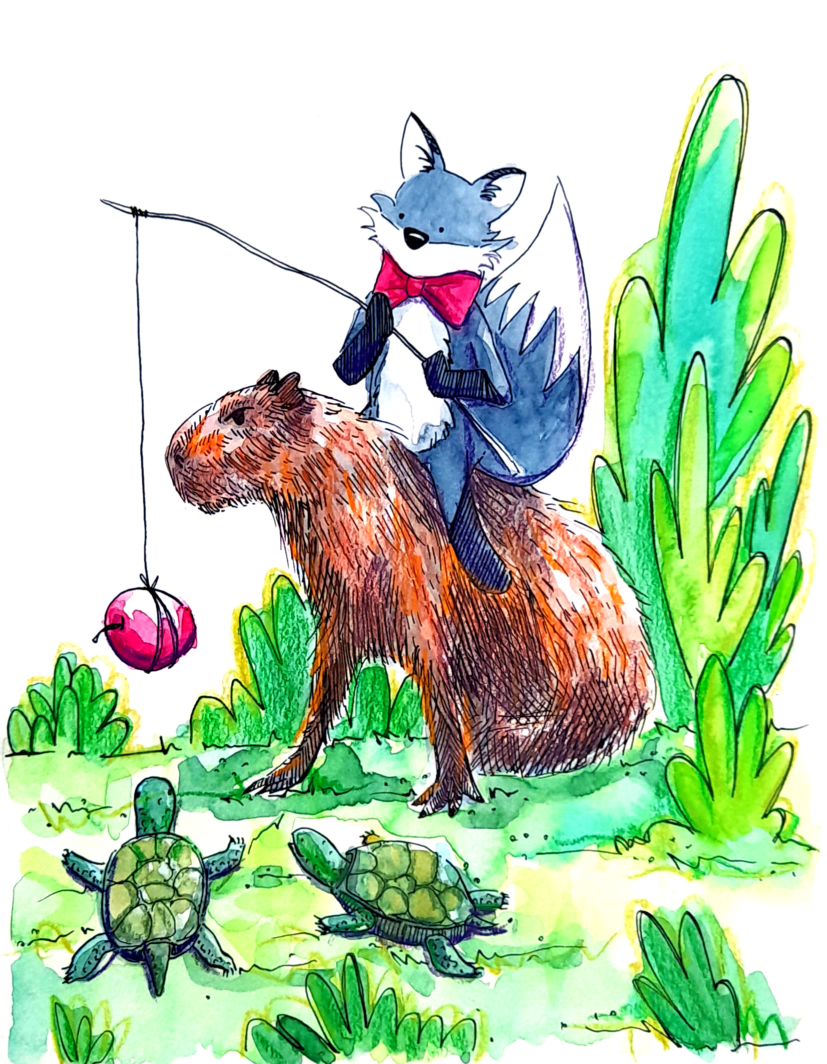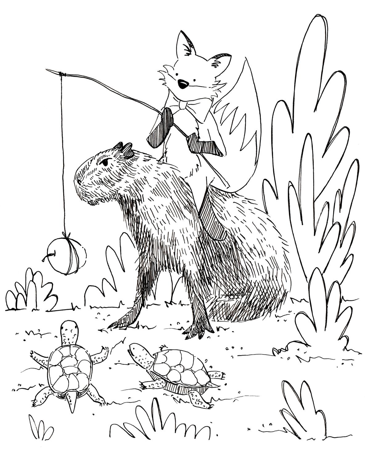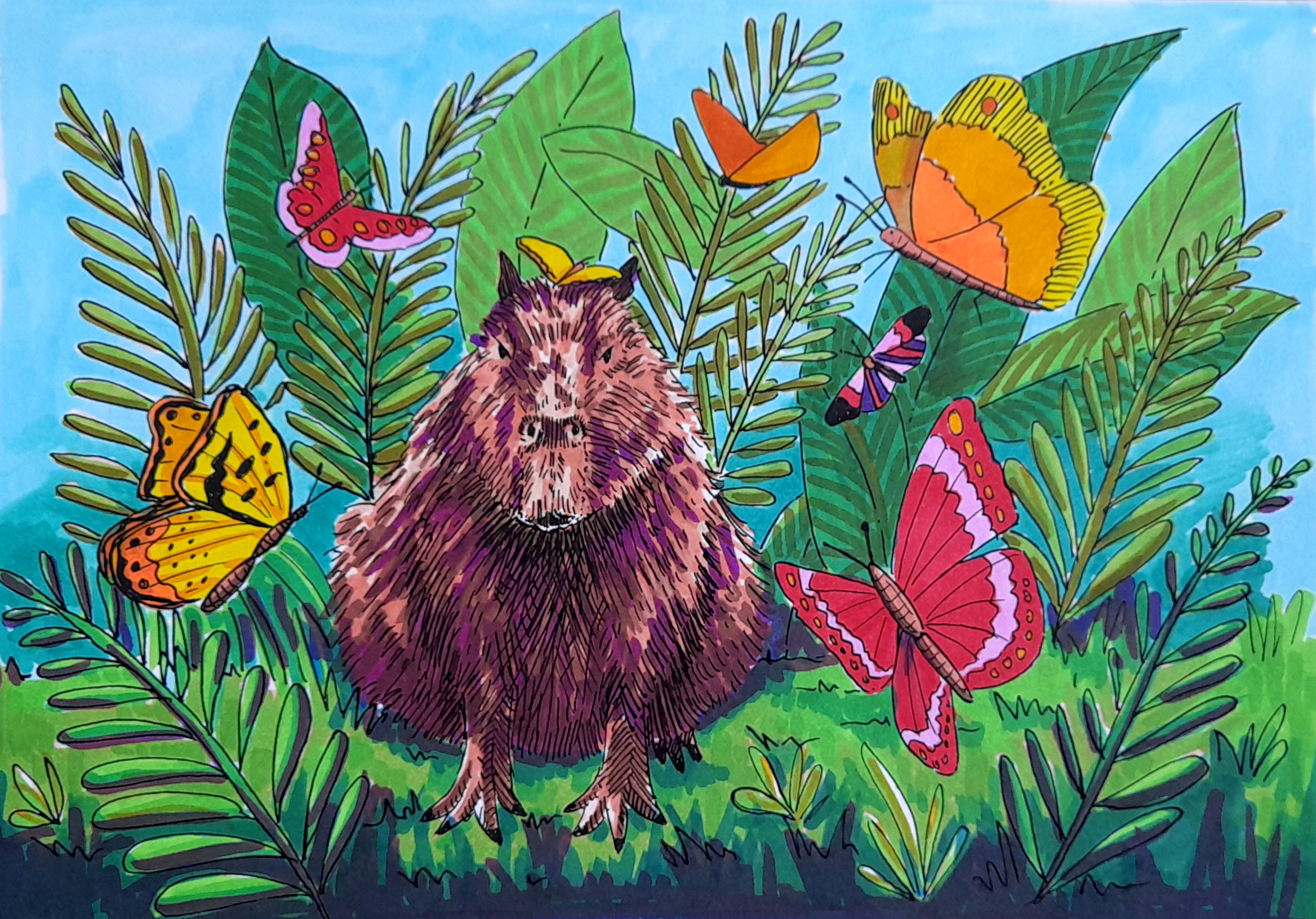 Meanwhile I started colouring in scenes from my own capybara drawing book.