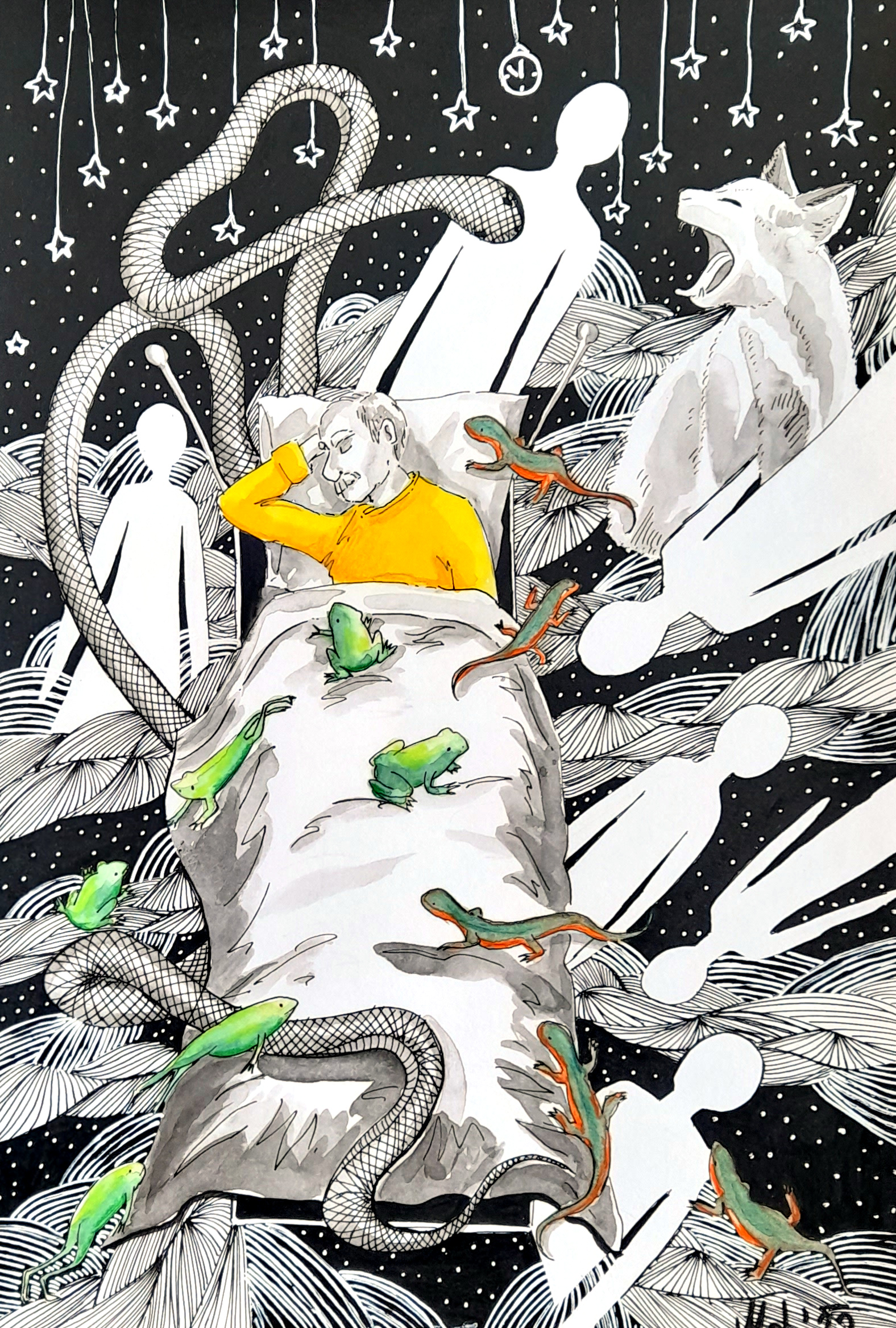 “Why is it, then, master of the house, when I slipped off the sleeping shelf that there were newts running on the floor; and, when I wanted to drink at the table, I saw frogs leaping about and croaking?”