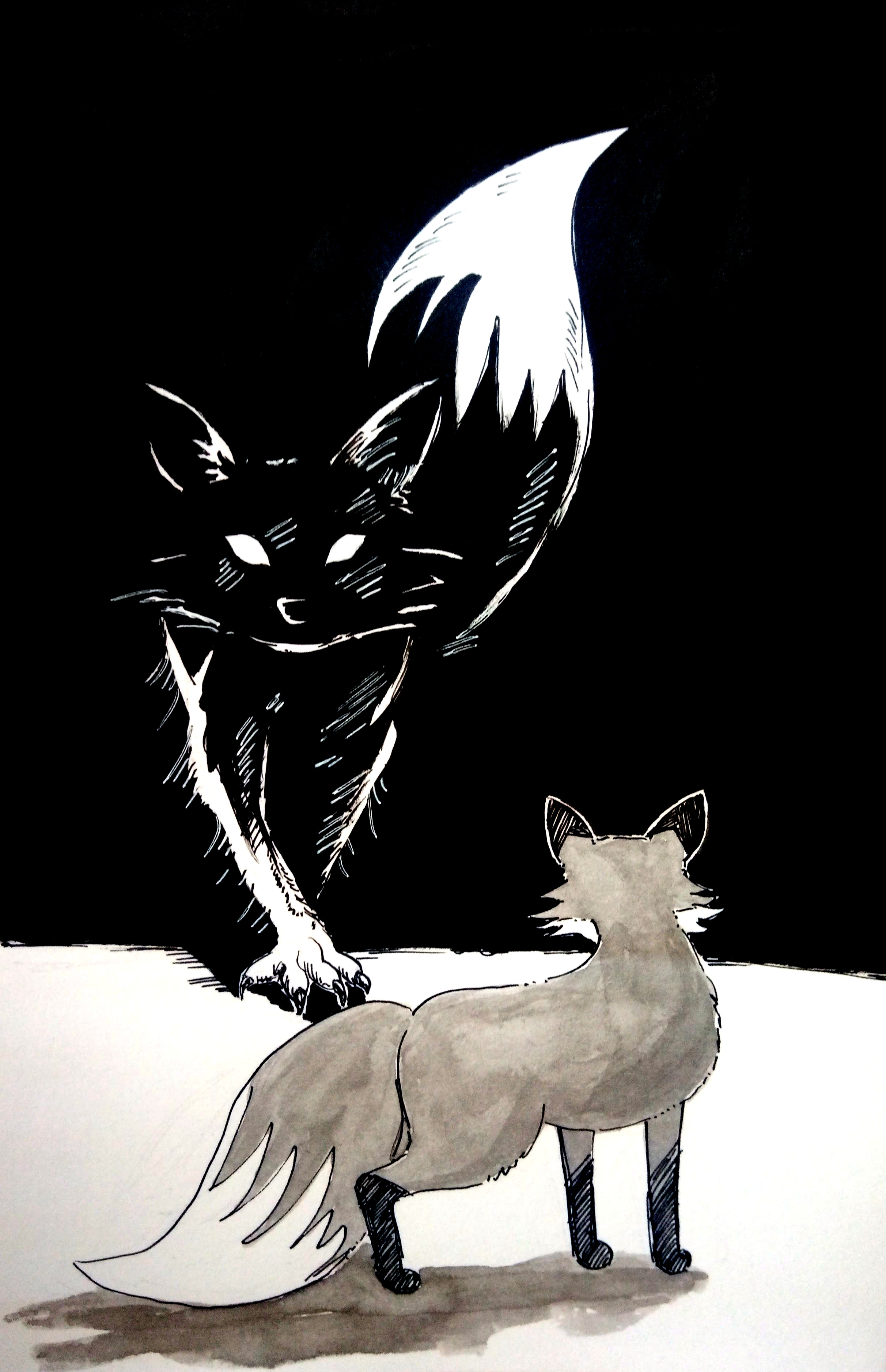 On his stroll around the forest Mr. Fox was looking for a good spot to relief himself. Not paying attention of where, he just went about his business.